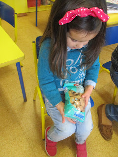 Enchemos, despejamos, verificamos que havia recipientes com muita e pouca água fizemos aquários com peixinhos e conchas, sopa de pedras e outras comidas tantas quanto a imaginação das crianças pode criar! Foi muito bom!
