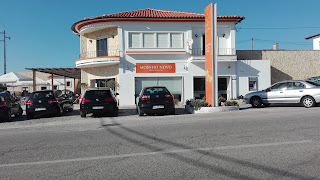 Para terminarmos a pintura de umas pastas que estavam em atraso, a nossa assistente colocou no exterior umas mesas e um guarda-sol.