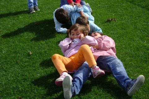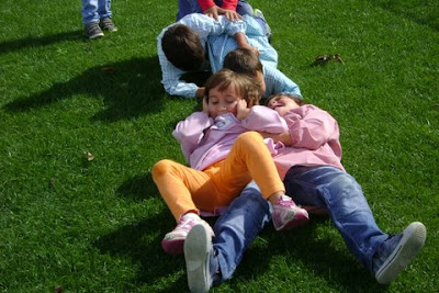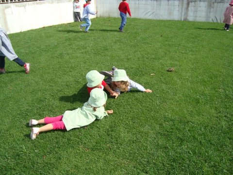 era impraticável. Por isso, foi substituido por um relvado acolhedor e bem tratado que fez as delícias da pequenada dos dois grupos. Foi com muita alegria e satisfação que as crianças espontaneamente criaram diferentes jogos e brincadeiras.