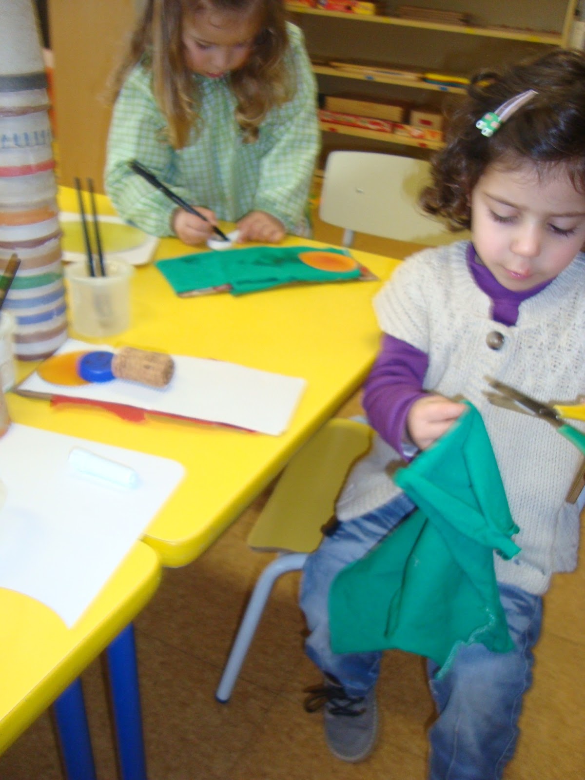 6. A Leonor desistiu da casinhas e com a Mariana fizeram camas para os porquinhos.