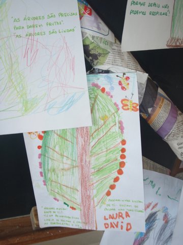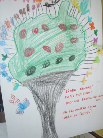 O grupo 1 do JI de Meãs ouviu a história "A árvore das folhas A4". Depois construiu uma árvore com folhas A4.