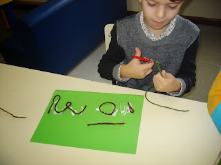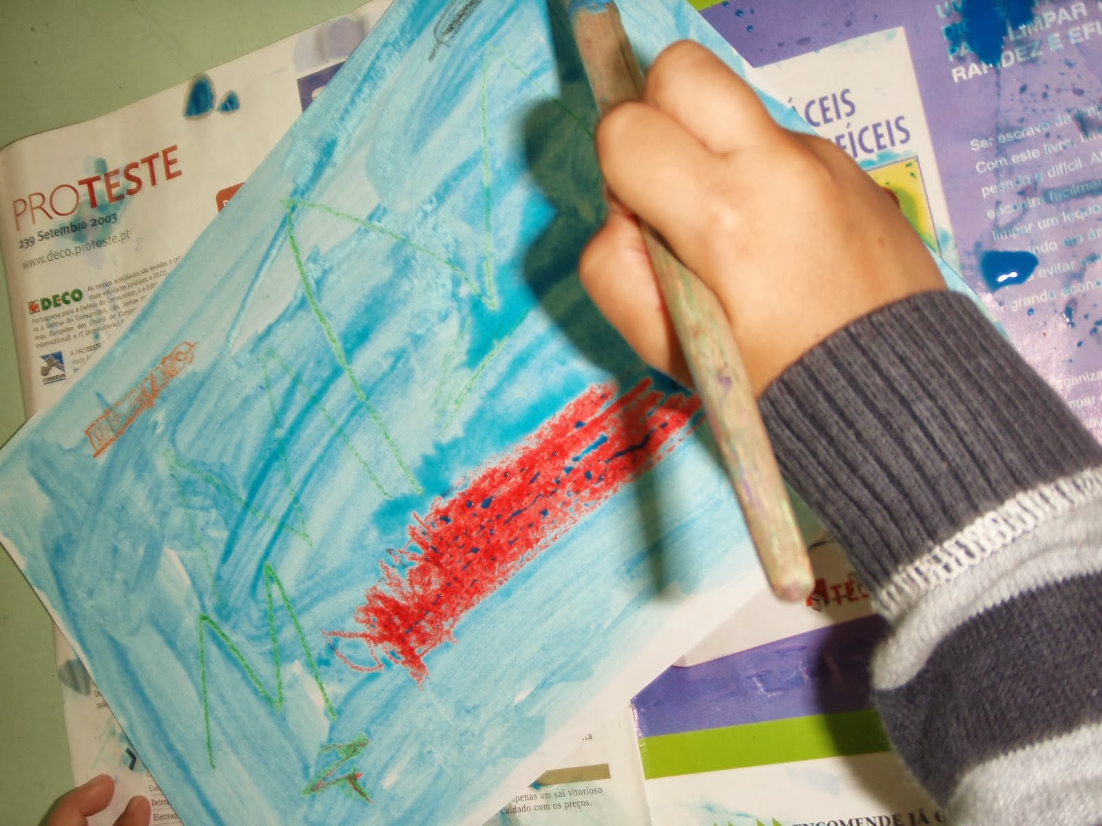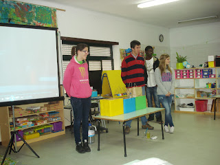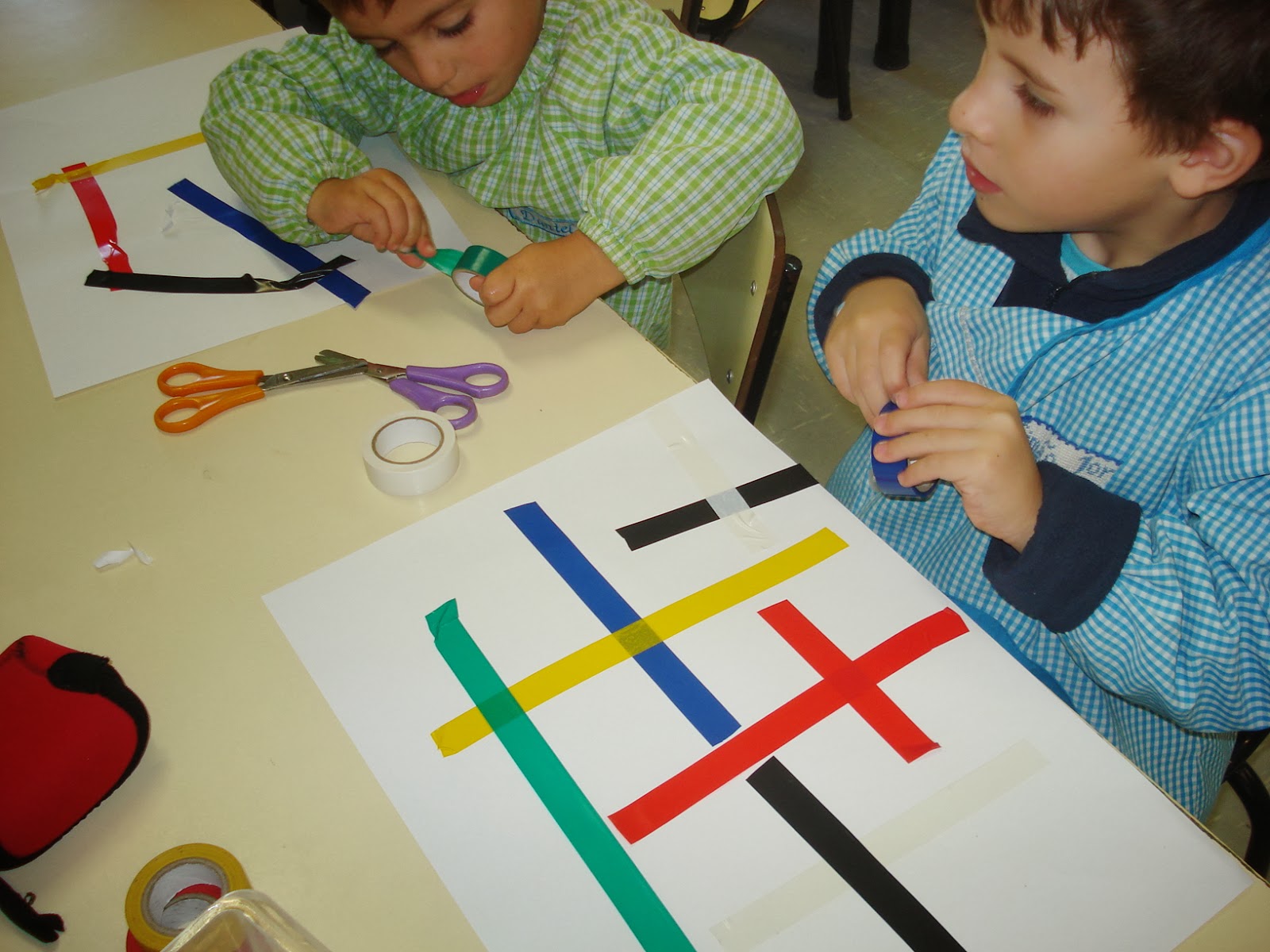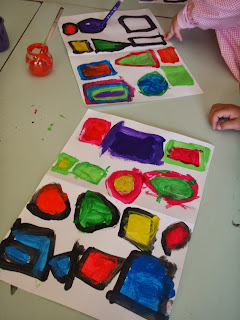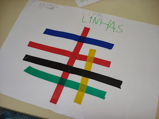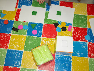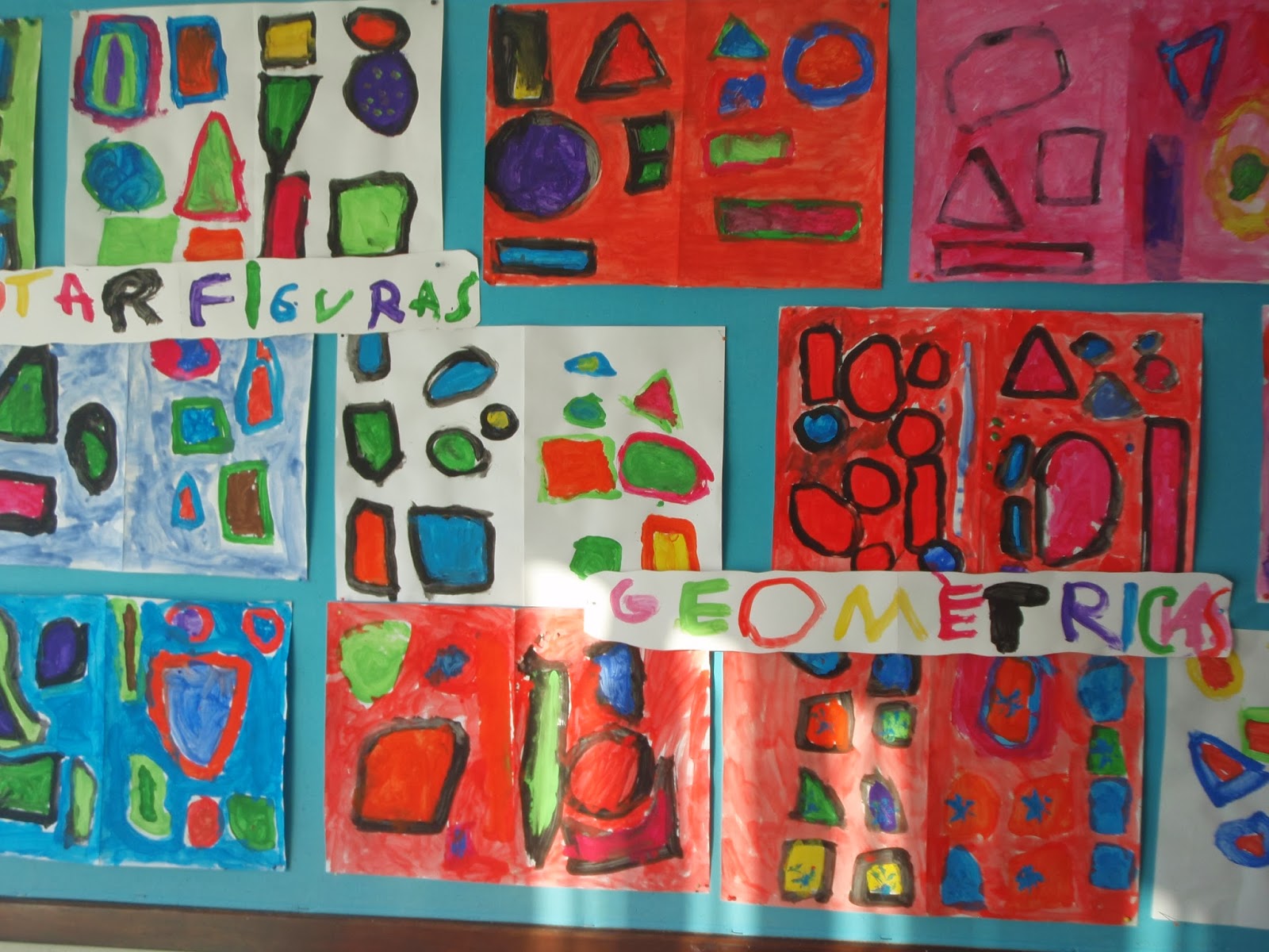 Cada criança tinha 6 peças geométricas de diferentes cores.