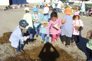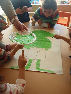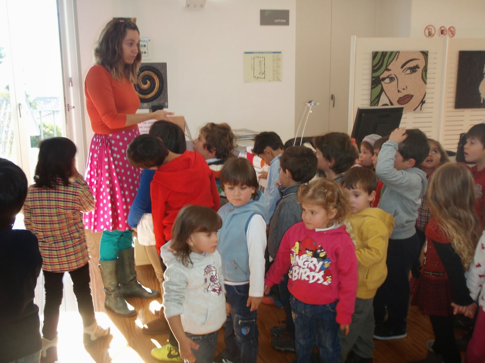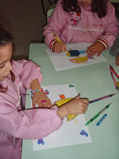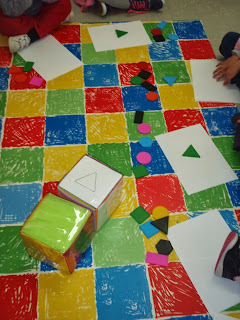 (pequenos e grandes) utilizando dados gigantes, um com as figuras, o outro com as cores.