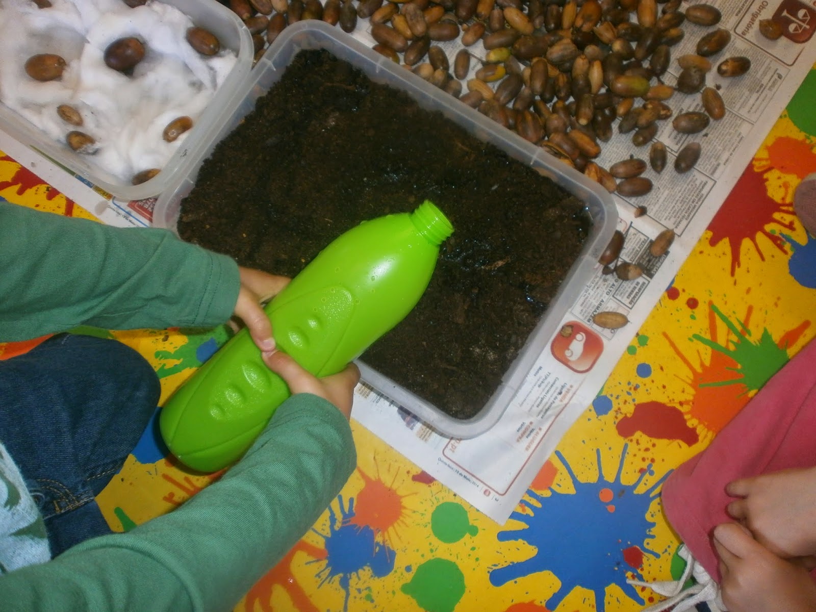 ... semeamos as bolotas em terra e em algodão...
