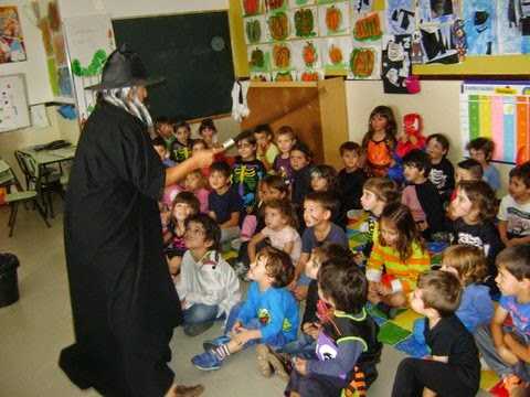 Ouvimos uma história, fomos bruxas, fantasmas, dráculas, aranhas e abóboras...