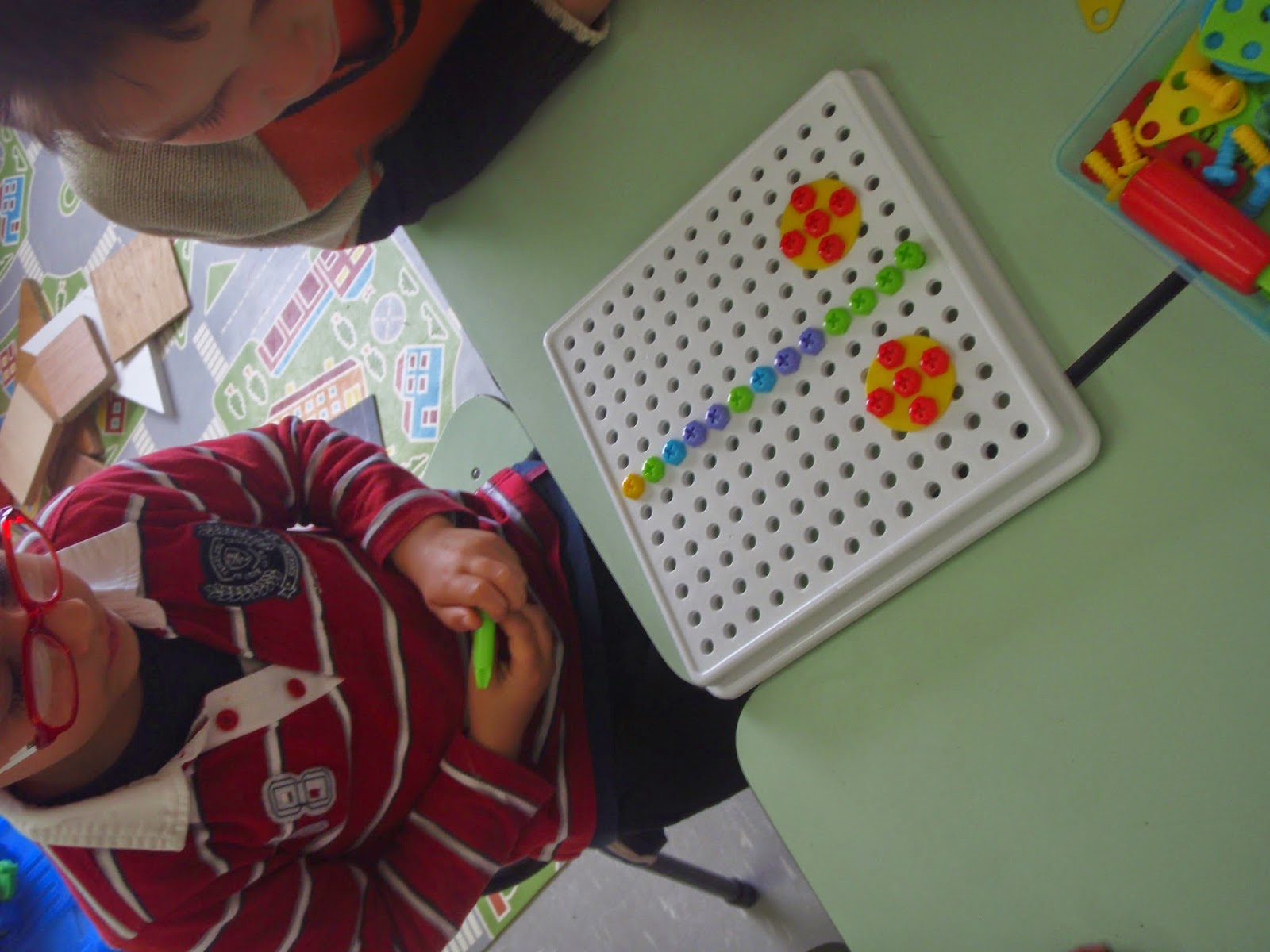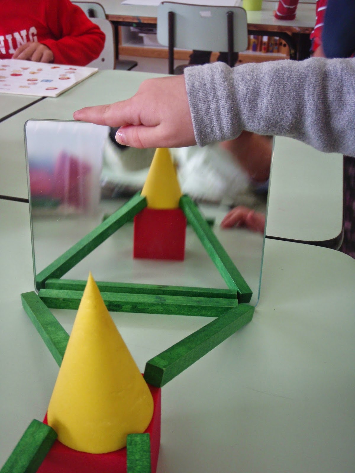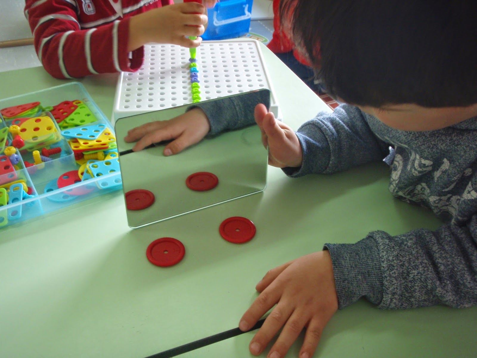 A partir daqui utilizamos um espelho e fizemos experiências com materiais e jogos da sala