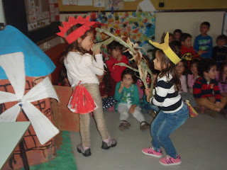 Os meninos da sala A, depois do conto da Galinha Ruiva, quiseram dramatizá -la...