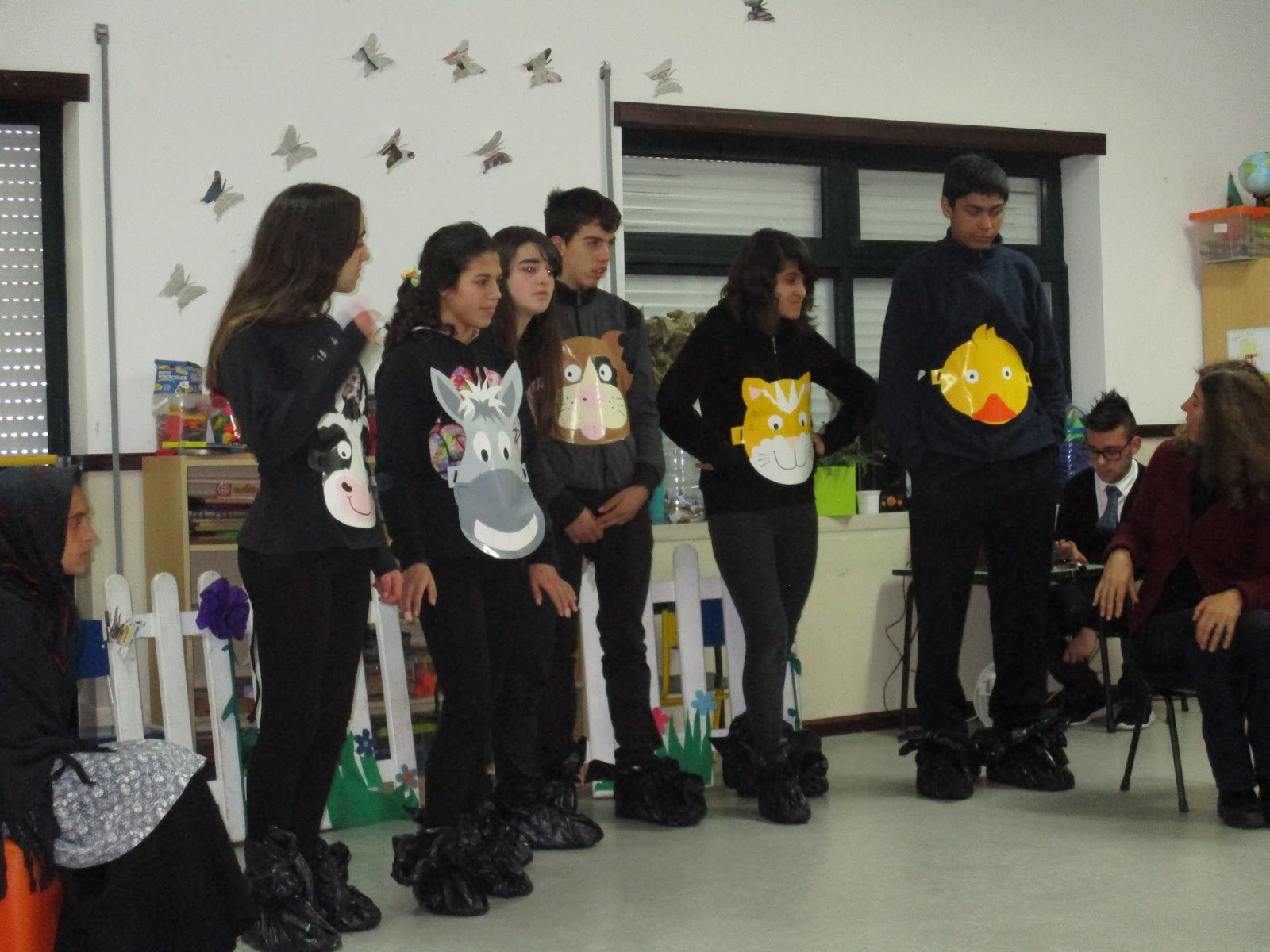 Com a ajuda da Prof. Florbela e da Animadora Licínia, a Micaela (7.ºB),o Nuno (10.º B),a Tatiana (10.º B), Joana (10.º C), Beatriz (10.º C), Diogo (10.º C), Maria Luísa (10.º C) e o Joel (11.º C) presentearam-nos com uma apresentação maravilhosa desta história muito engraçada!