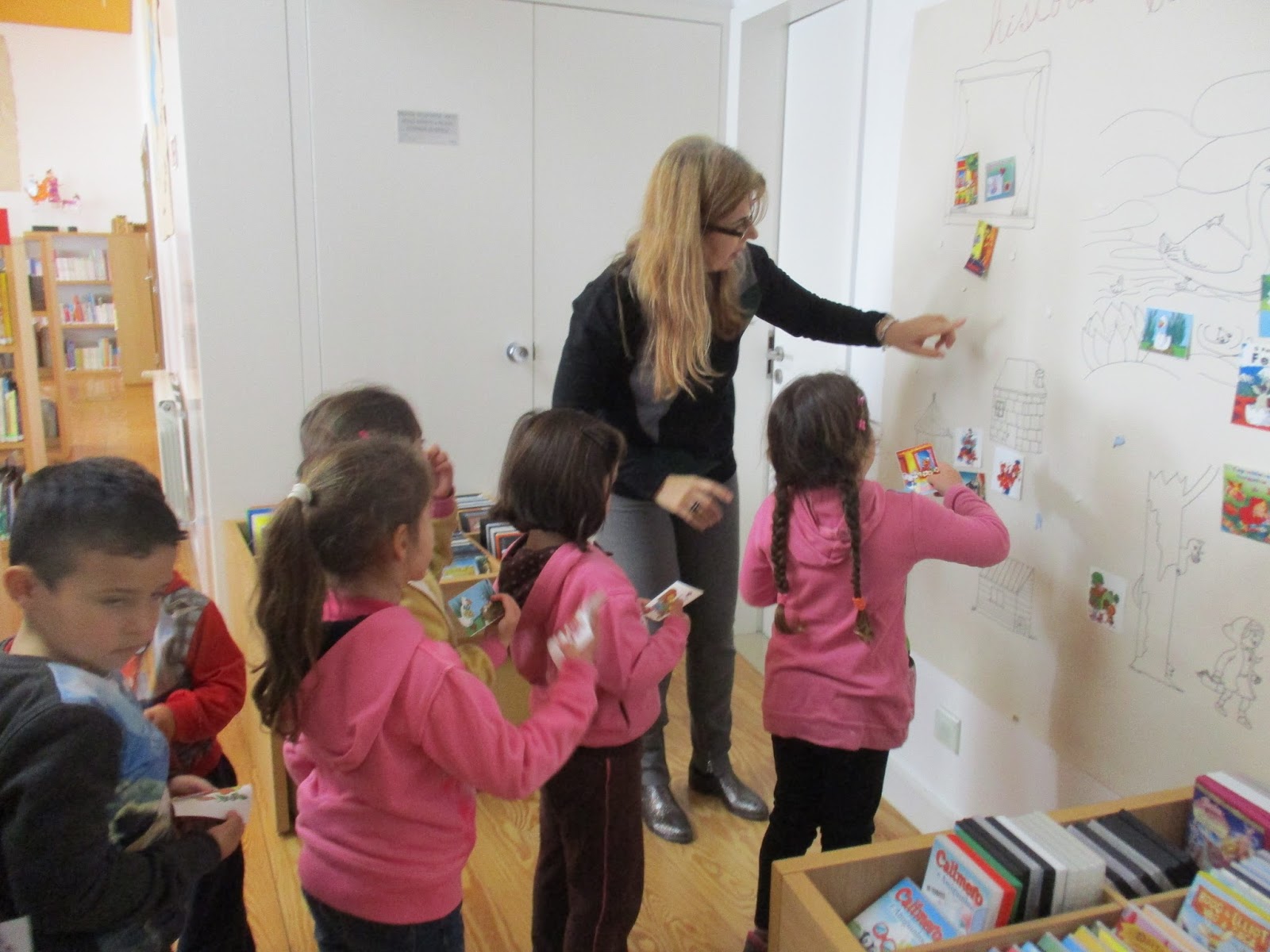 Ontem fomos visitar a  Biblioteca Municipal de Montemor-o-Velho. Ouvimos uma história muito baralhada e muito divertida, recontamos histórias tradicionais e fizemos um jogo de identificação.