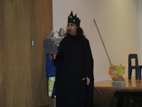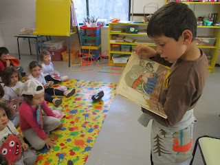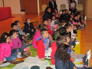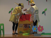 À tarde vimos um teatro de fantoches,"A casa da mosca fosca", feito pelos meninos da sala A;