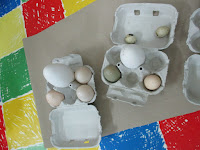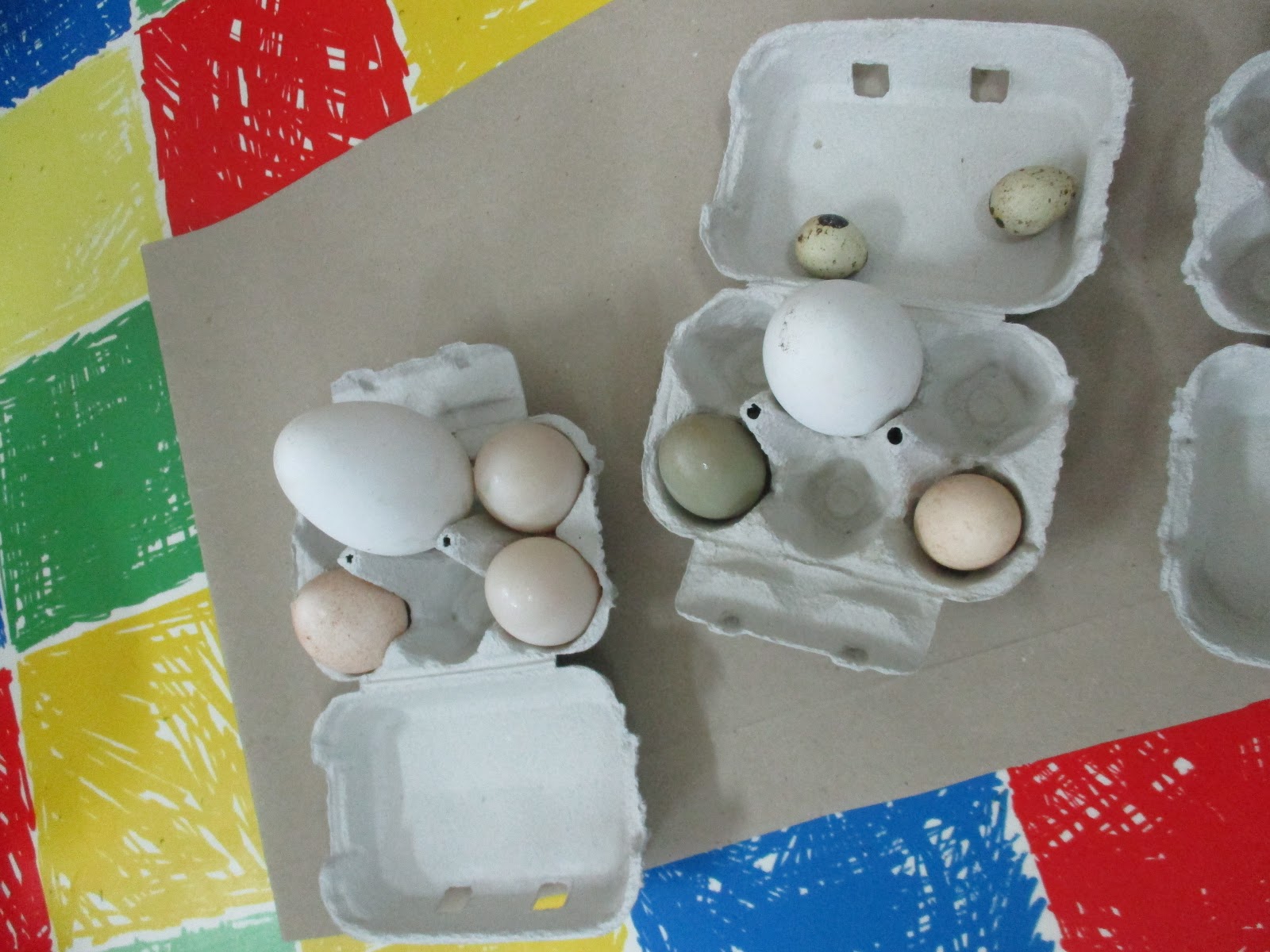 Entretanto,  as crianças foram trazendo ovos de outras aves- como eram todos diferentes uns dos outros!